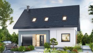 "Dom w malinówkach 23 (GE) OZE" to nowoczesny budynek jednorodzinny z poddaszem użytkowym i energooszczędnymi rozwiązaniami.